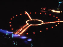 A 3000 sq. meters' small void of the city was refurbished to manifest the message : "Aspiration for the World Peace". Visitors feel the human existence through communicating to the Heaven by the produced effects of light, water and sound. The neighboring Kakigawa river is utilized fully as the theatrical setting. The park itself is the requiem for the 1460 victims of the last world war.